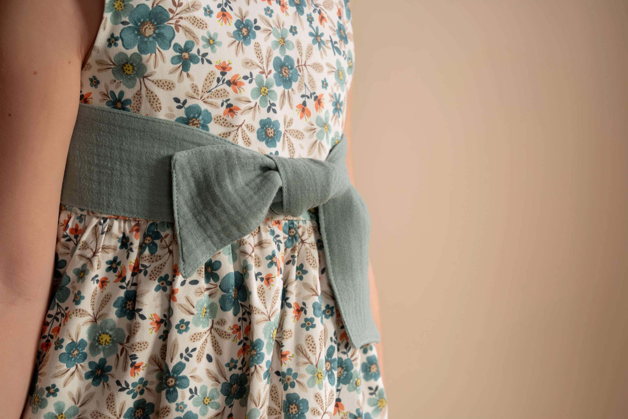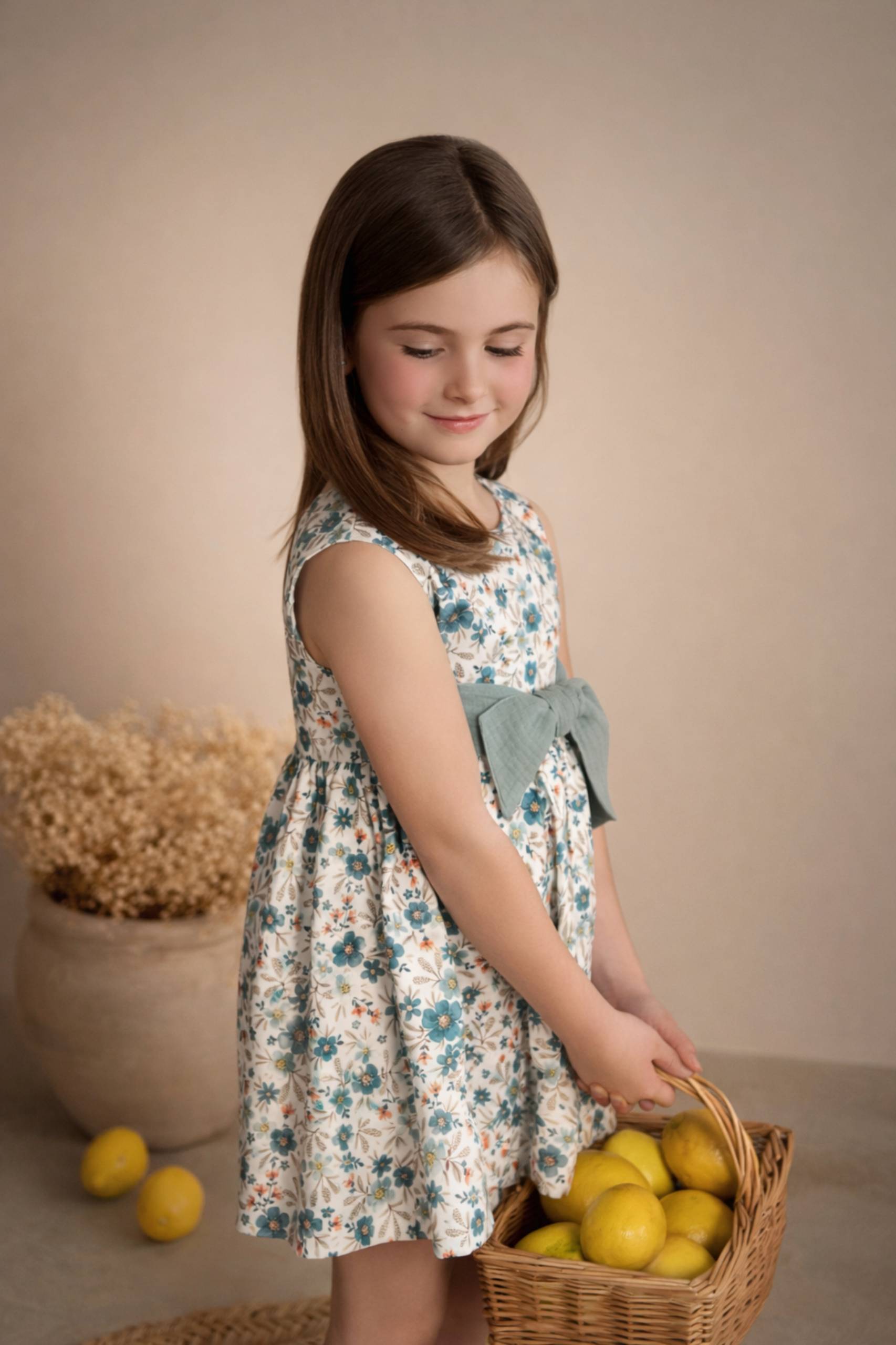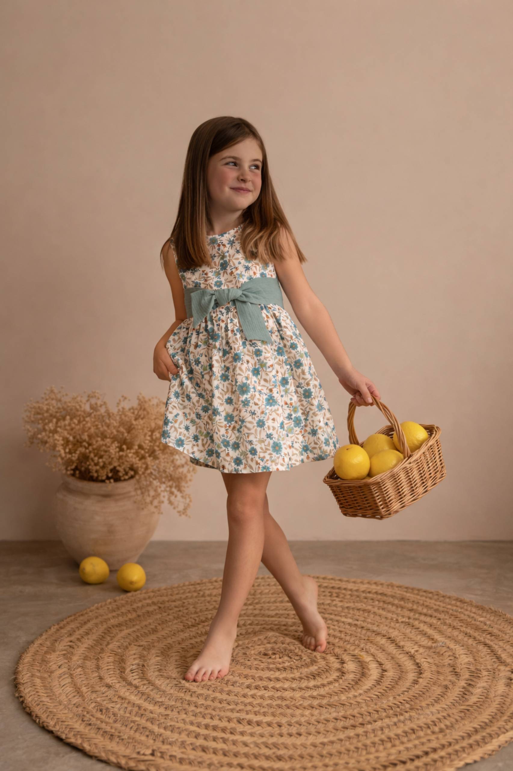 Vestido de diseño delicado con estampado floral y detalle de lazo en la cintura. Incluye forro 100% algodón para mayor comodidad. Fabricado en España por la marca Paloma de la O.